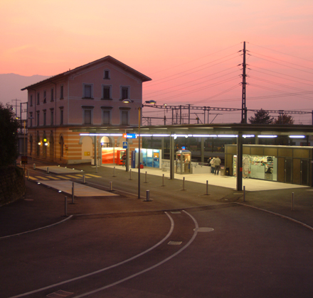 Stazione ferroviaria, nuova pensilina, sistemazione esterna